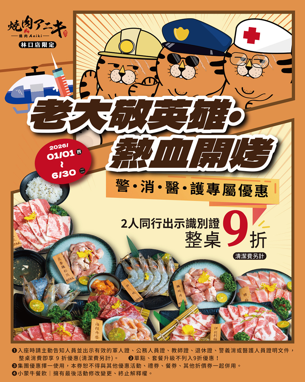 警・消・醫・護 專屬優惠|燒肉𝗔𝗻𝗶𝗸𝗶熱血開烤