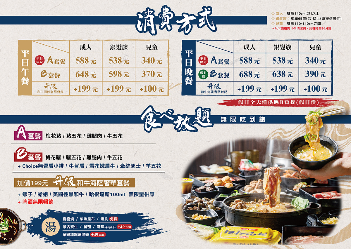 壽喜燒/柴魚昆布/素食 免費 蒙古養生/番茄/麻辣(牛肉成分)+49元/鍋 |